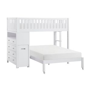 Maximize your child’s bedroom space with this multifunctional loft bunk bed, designed for both style and practicality. Available in 4 sleek finishes, this bunk bed features a top twin bunk with guard rails for safety and a full-size lower bed. The built-in storage unit includes seven dovetail drawers with smooth ball-bearing glides for organized storage, and a hidden desk on casters that easily rolls out for study or creative activities. Polished nickel-tone hardware adds a touch of sophistication, and the design eliminates the need for a foundation or box spring, making it a space-saving and efficient choice for any bedroom.Read More