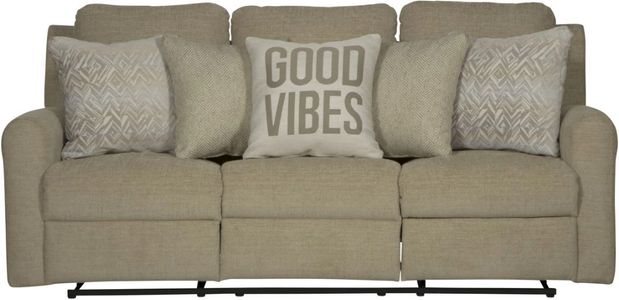 This reclining sofa is the pinnacle of relaxation and, after a long day, there is truly nothing better than sinking into its refined softness. With its track arms, sturdy frame, and beige upholstery, this sofa is sure to please even the most discerning comfort aficionado.Read More